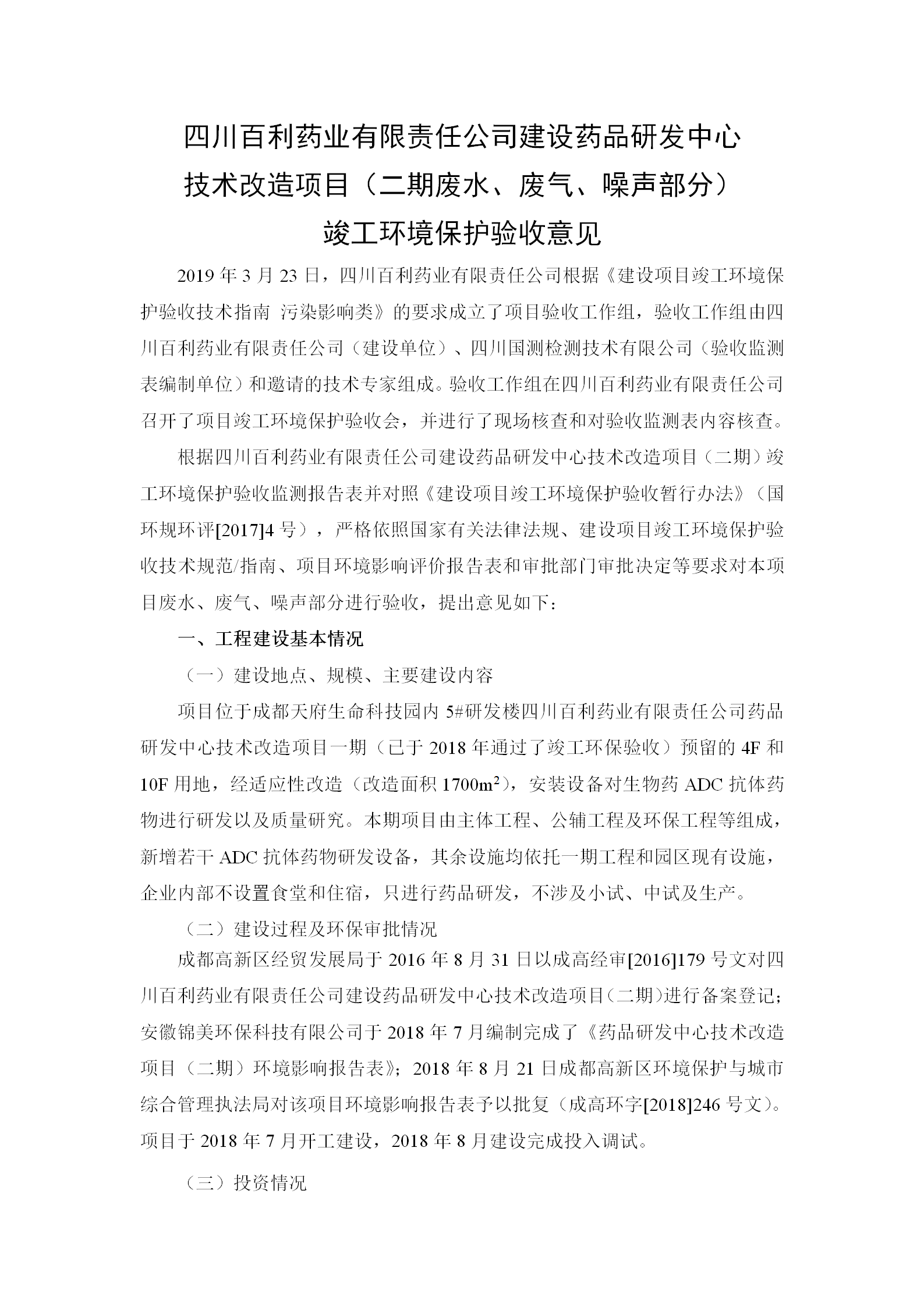 根据《国务院关于建设项目竣工环境保护管理条例的决定》以及环保部《建设项目竣工环境保护验收暂行办法》的公告(国环规环评[2017]4号)现将《四川江南官方注册-江南(中国)有限责任公司药品研发中心技术改造项目(二期)竣工环保验收监测报告》及验收意见公示如下: